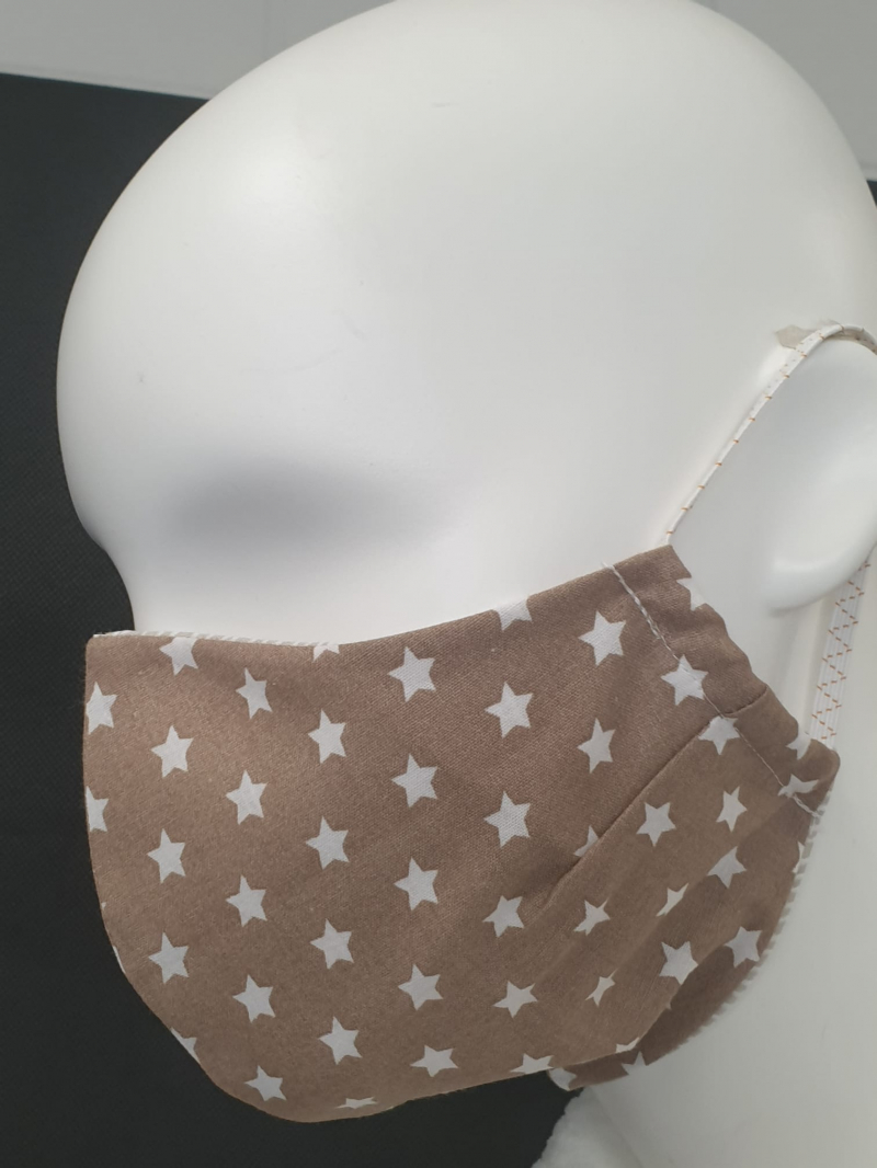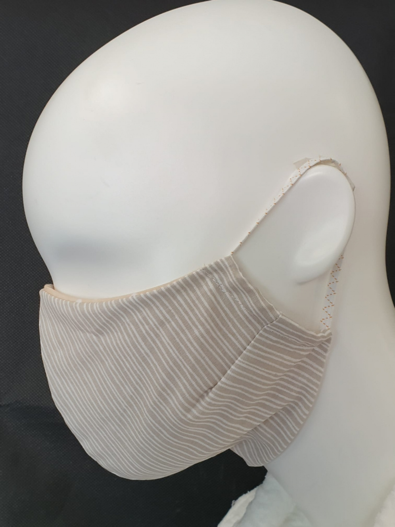 Gesichtsmaske / Mundschutz: Sterne beige, gestreift
